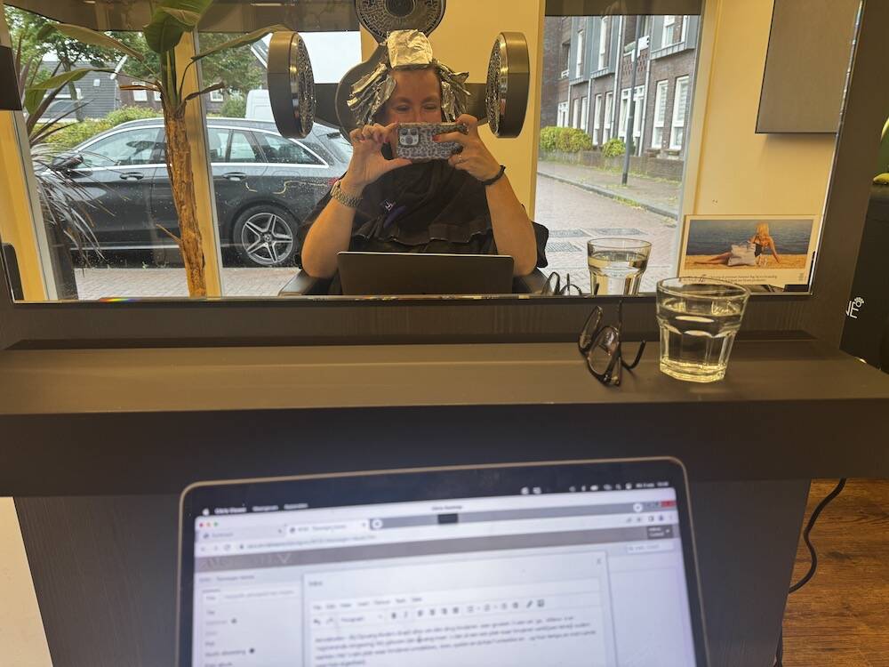 Ik ben een ochtend bij de kapper en ondertussen aan het werk.