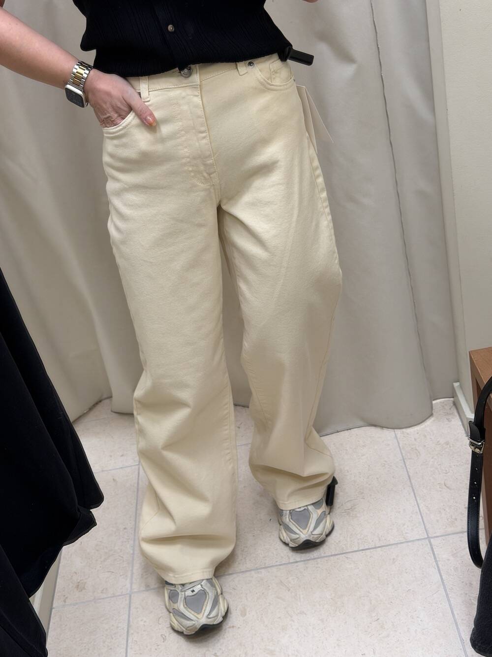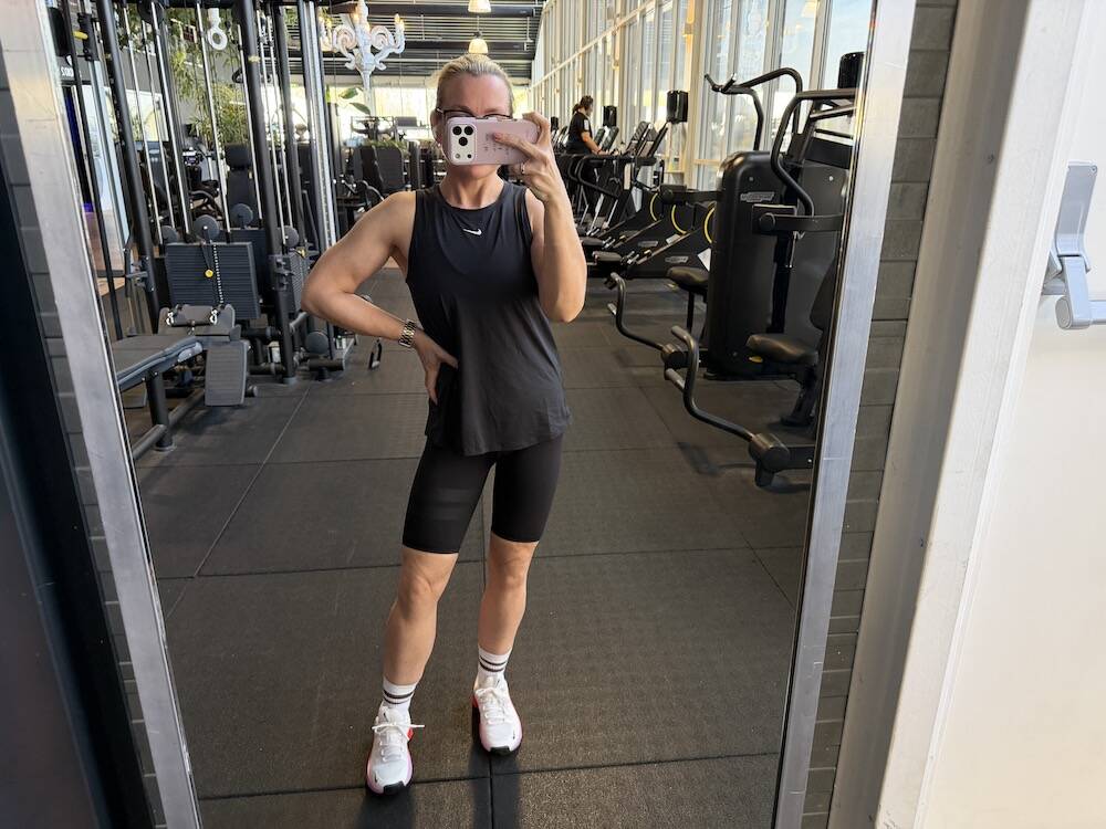 Deze broek gaat ook nog mee, ook van Selected. Voor de rest koop ik bij Nike nog hardloopschoenen. Niet dat ik van plan ben om te rennen maar ik vond ze tof, én wilde schoenen voor op de loopband hebben. Ik heb ontiegelijke pijn aan mijn scheenbeen van hellinglopen tijdens mijn cardio-momenten op mijn Metcons, dus ik hoop dat dit het een beetje gaat verhelpen.