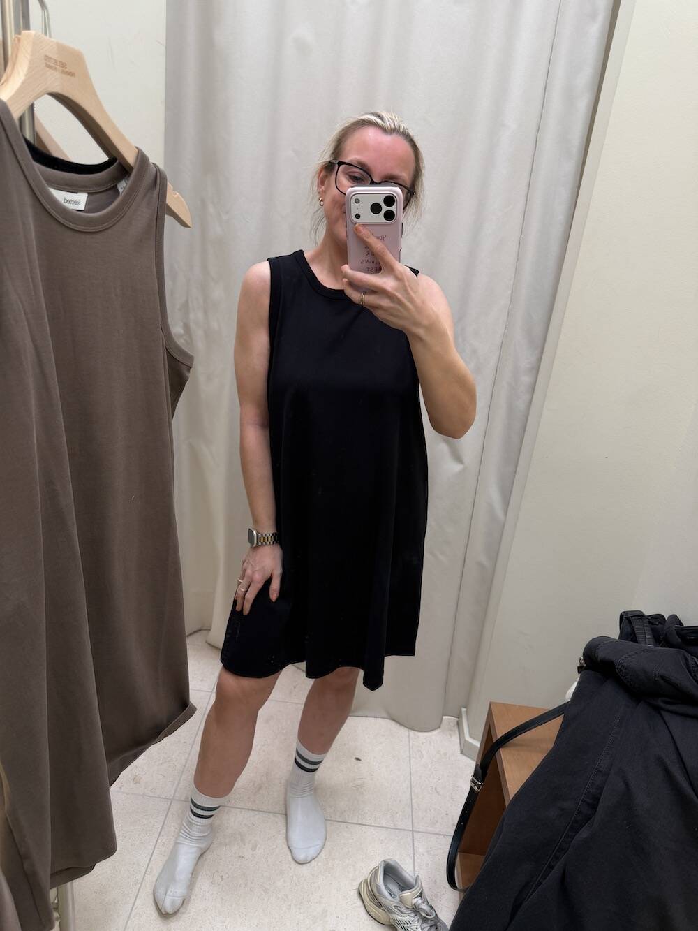 Ik koop wat sporttops bij Bjorn Borg en slaag bij Selected voor twee van deze jurkjes (zwart en de bruine die je ziet hangen). Lekker basic.