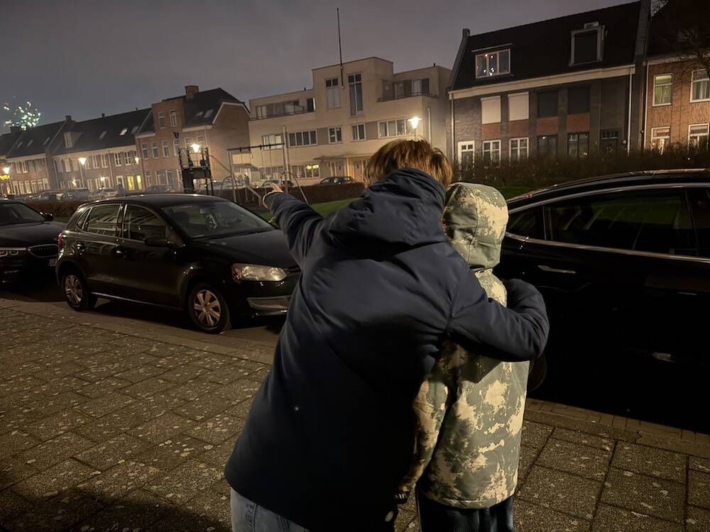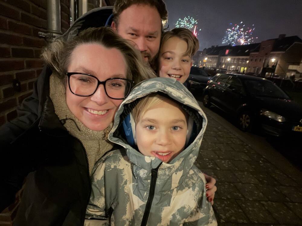 Maddox is doodsbang voor vuurwerk, dus hij draagt een koptelefoon en blijft altijd binnen. Maar dit jaar wilde hij opeens naar buiten. Terwijl Raymond en Skyler vuurwerk afstaken, bleef ik met Maddox voor de deur. Maar hij wilde steeds een stapje verder en heeft uiteindelijk een half uur met Skyler naar vuurwerk staan kijken. ‘Jammer dat het voorbij is, want anders had ik volgend jaar wel zelf vuurwerk kunnen afsteken’. Haha, grapjas.