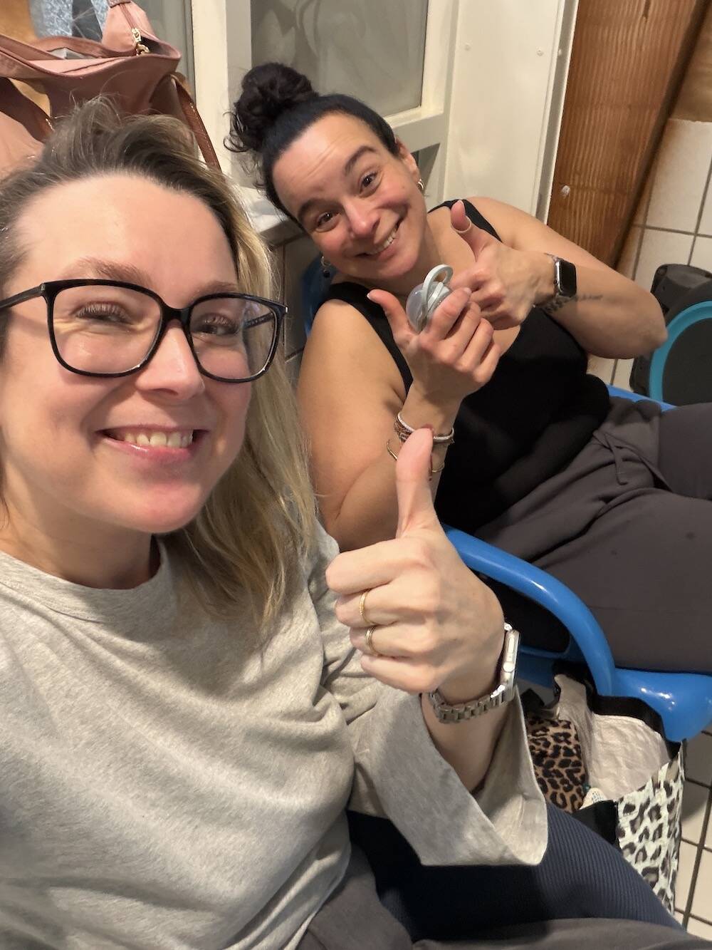 De kinderen willen zwemmen, dus wij offeren ons op door hier te zitten.