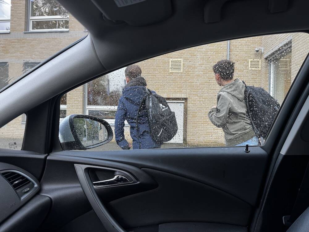 Het regende enorm, dus ik bracht de jongens even naar school. Ben zo’n moeder die dat heel zielig vindt, haha.