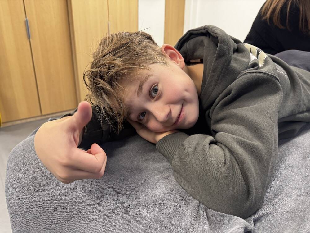 Maddox heeft een studiedag dus hij blijft lekker lang in zijn pyjama.
