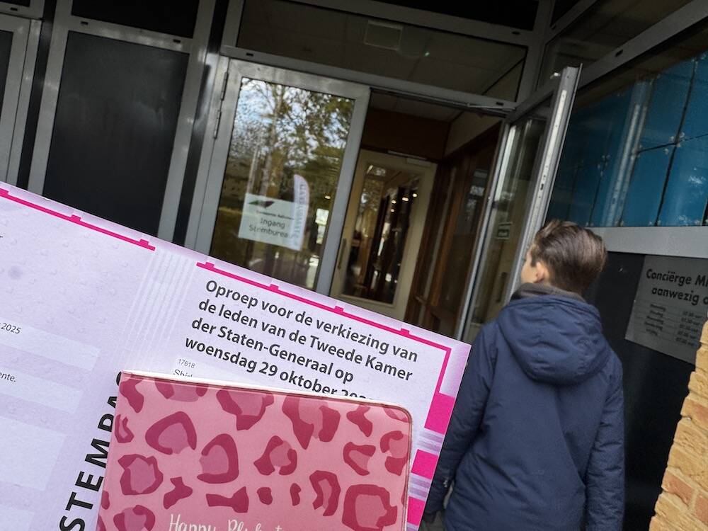 Skyler moet later beginnen vanwege uitval, dus hij gaat even met me mee stemmen.