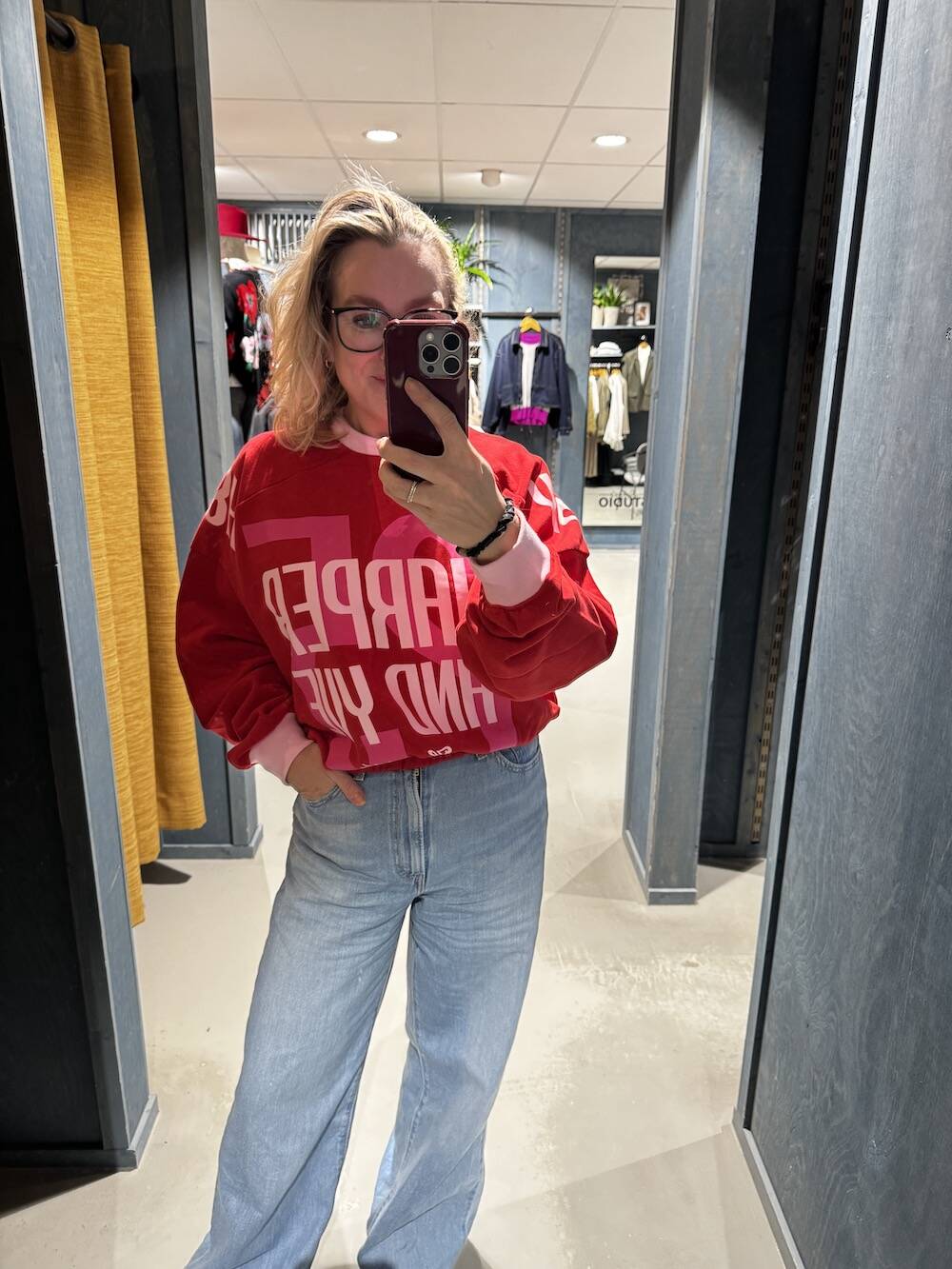 Ik pas om de hoek deze sweater en neem hem mee. Had gewoon zin om iets leuks voor mezelf te kopen.
