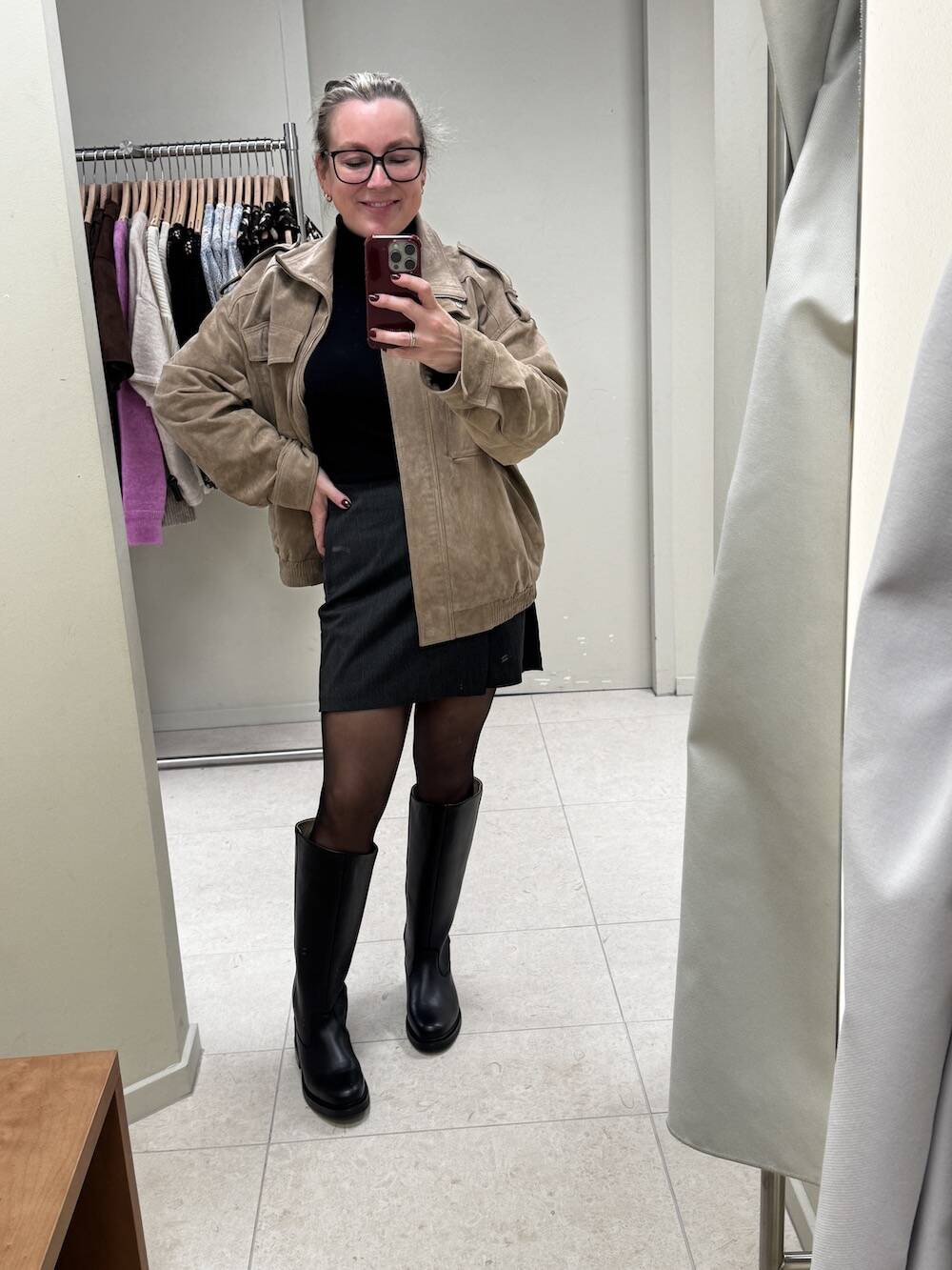 Ik zoek al zolang hoge laarzen waar mijn kuiten in passen. Ondanks dat ik veel ben afgevallen, pas ik veel laarzen niet. Deze spotte ik vorige week al bij Selected en ze zitten de hele week in mijn hoofd. Nu pas ik ze even en ze zijn echt wijd.Ik heb zelfs ruimte over. Ik besluit ze mee te nemen. Cadeautje voor mezelf! Zo mooi basic. Goed leer, lekker stoer, maar toch ook netjes. Ze zitten heerlijk. En ze zijn dus wijd!