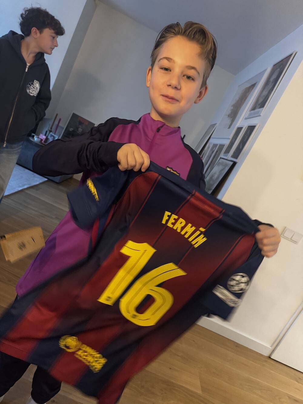 Een echt FC Barcelona shirt met zijn favoriete speler van dit moment, met alles erop en eraan,rechtstreeks vanuit Barcelona. Kind is dolgelukkig met al zijn cadeaus!