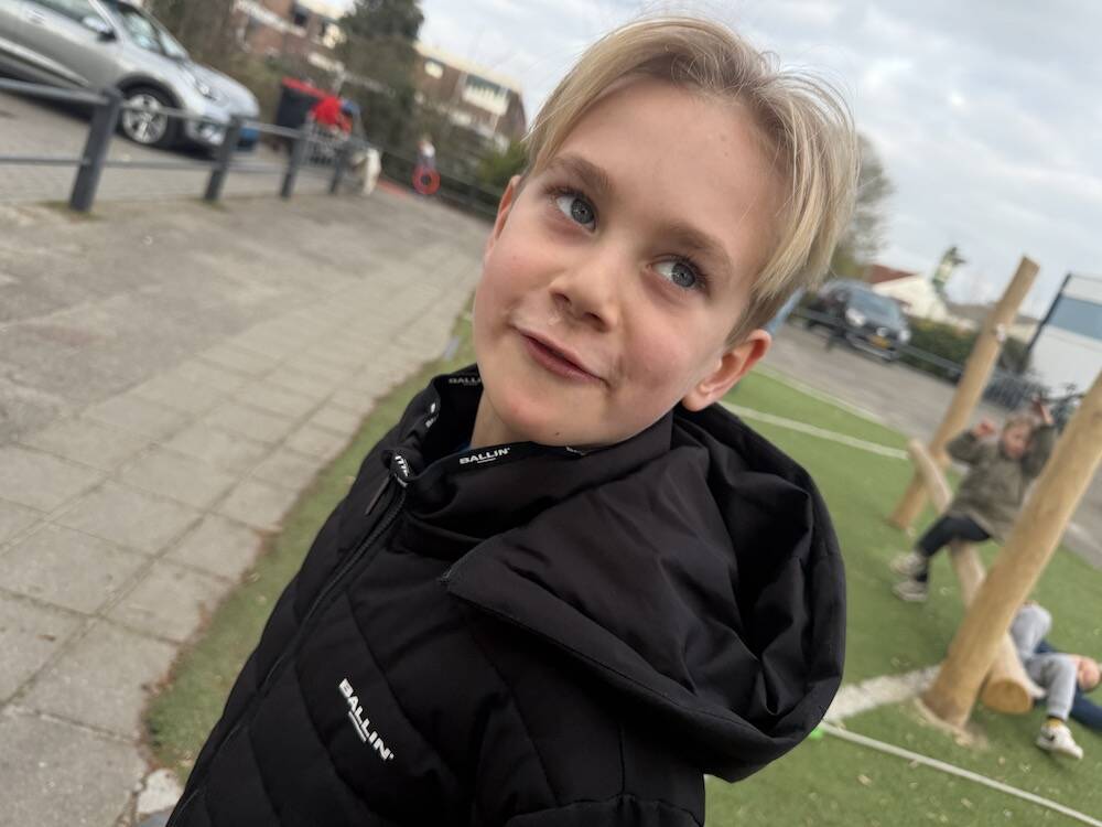 Ik breng Maddox naar school. Het Grote Rekenfeest is aan de gang dus ik sta ’s ochtends ook weer eens op het schoolplein.