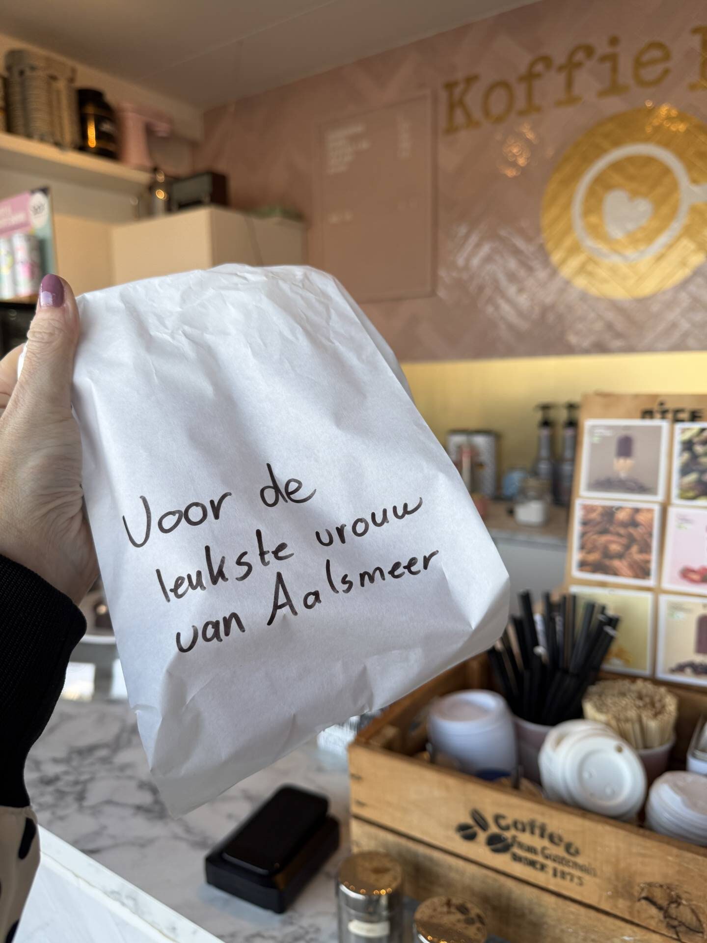 Als we naar Wim en Nicole gaan, moeten we natuurlijk even langs Koffiepunt. Dit is toch superleuk om te ontvangen? Haha.