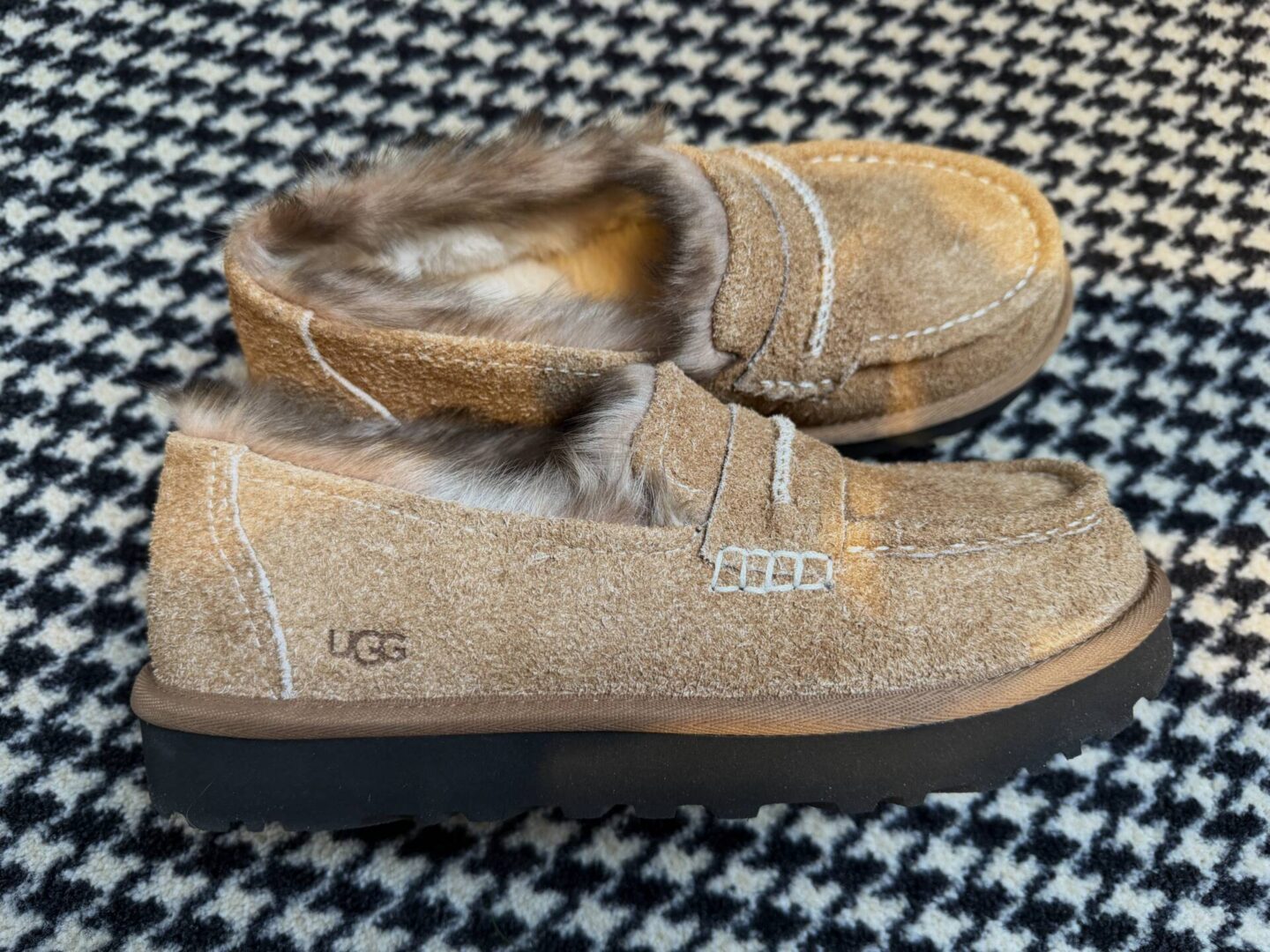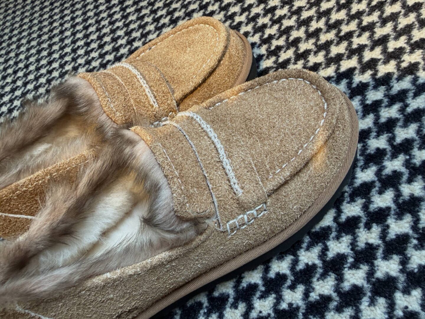 Maar de aanhouder wint. Na een paar dagen de website van UGG zelf in de gaten te hebben gehouden, lukte het me om een maatje 38 te bemachtigen in de camel-kleur die ik graag wilde. Ondertussen zat ik natuurlijk nog steeds vast in het algoritme, dat voor mij bepaalde dat ik écht de juiste keuze had gemaakt. Inmiddels heb ik de schoenen een paar dagen in huis en heb ik ze elke dag aan. Warm. comfortabel, stoer en toch nog prima voor naar mijn werk. Ik heb een paar nette, smalle loafers, maar die zijn me eigenlijk te netjes. Ik wil ook niet elke keer mijn witte gympen aan. Dit is precies wat ik leuk vind; een paar grovere loafers. Dat ze zo heerlijk gevoerd zijn, is natuurlijk mooi meegenomen. Zoals het AD schreef: pantoffels voor naar je werk. En dat kan ik alleen maar beamen.