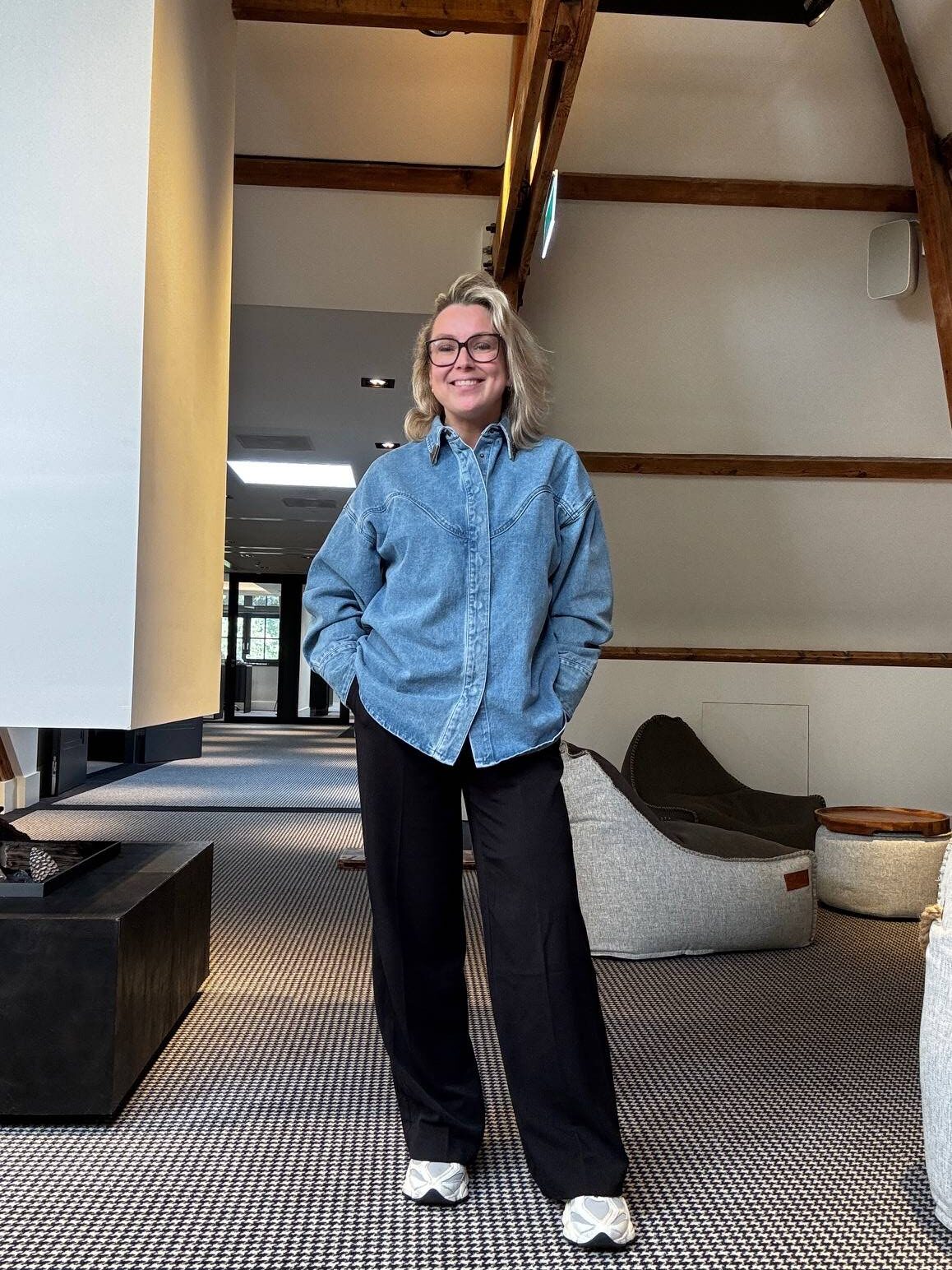 Broek Yaya, shirt Geisha, jasje Zara, schoenen New Balance.